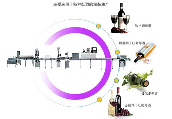 紅酒灌裝線也可以叫做小型葡萄酒灌裝生產線,是及刷瓶、沖控、灌裝、燈檢、打塞、熱收縮、烘干、貼標為一體的多功能產線,投資少、生產工藝簡單,易操作,灌裝精度高,可實現無級調速,生產節拍易控制,是中小型企業的理想選擇。