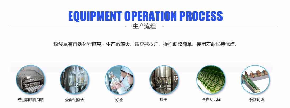 該線主要用于白酒、黃酒、葡萄酒、醬油、醋等液體生產(chǎn)線的流水作業(yè),該線具有自動(dòng)化程度高、生產(chǎn)效率大、適應(yīng)瓶型廣、操作調(diào)整簡(jiǎn)單、使用壽命長(zhǎng)等優(yōu)點(diǎn)。