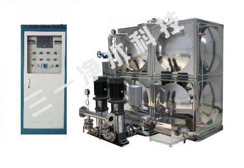 無負壓變頻供水設備是由無負壓裝置和恒壓變頻設備組成的供水設備。無負壓裝置分為開式和 閉式,開式流量調節器為不銹鋼水箱(稱箱式無負壓設備),閉式流量 調節器為不銹鋼無負壓灌(罐式無負壓設備)。將系統設備串接到市政自來水管網壓力不足的地方,設備通過壓力傳感器檢測出口壓力,將檢測值和設定值比較,運 算出在市政自來水管網的原由壓力基礎上需要增加的壓力值,確定水泵投入運行臺數和變頻器輸出頻率(反應到電機及水泵為轉速)以符合用水曲線實現恒壓。