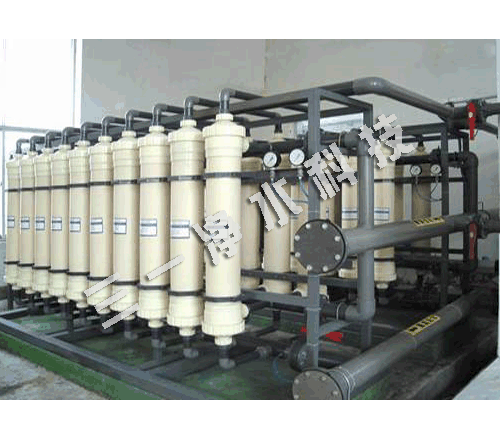 超濾是一種以篩分為分離原理,以壓力為推動力的膜分離過程,過濾精度在0.005-0.01μm范圍內, 可去除水中的微粒、膠體、細菌、熱源及高分子有機物質。可廣泛應用于物質的分離、濃縮、提純。超濾過程無相轉化,常溫下操作,對熱敏性物質的分離尤為 適宜,并具有良好的耐溫、耐酸堿和耐氧化性能,能在60℃ 以下,pH為2-11的條件下長期連續使用。